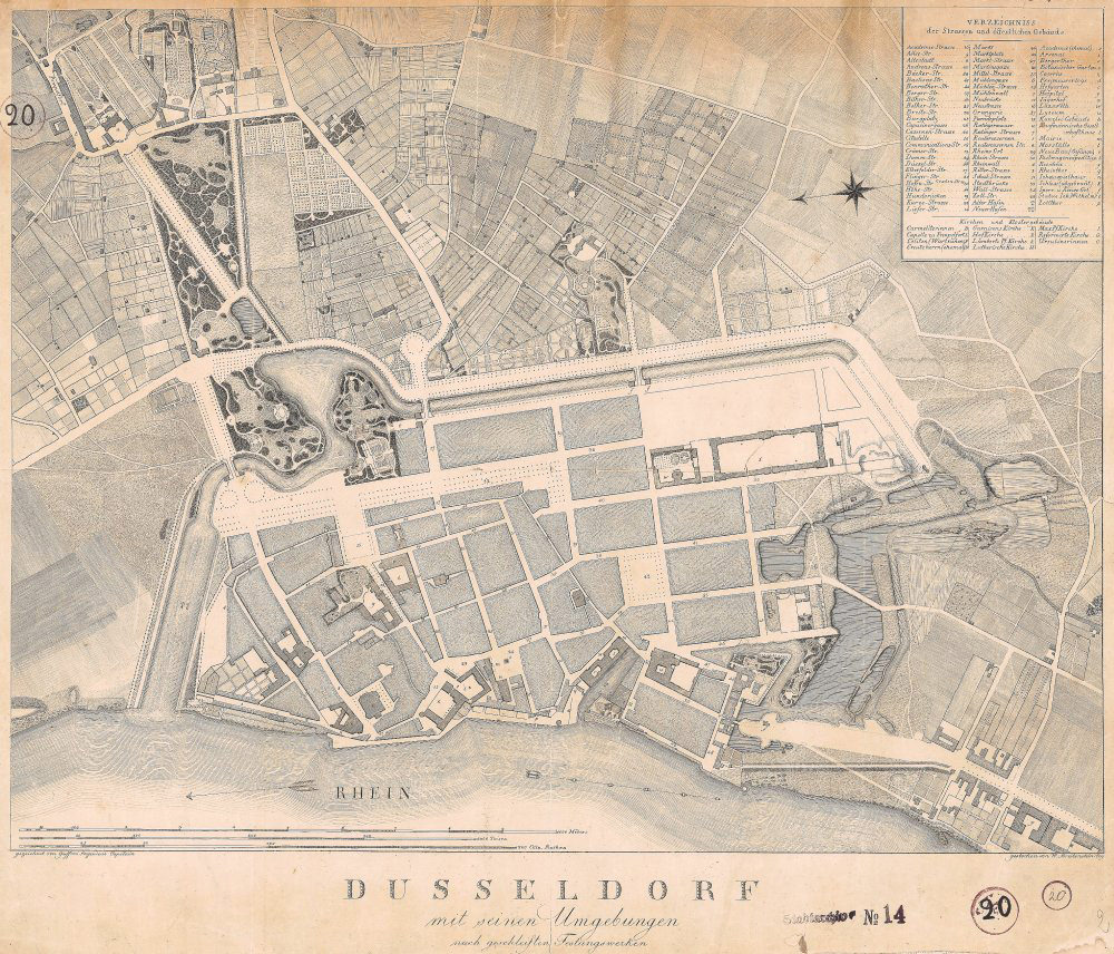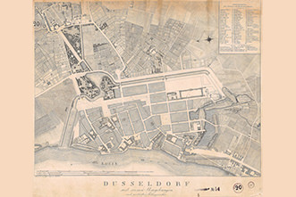 Die Königsallee ist noch nicht bebaut, auch die heutige Heinrich-Heine-Allee ist weitgehend unbebaut.